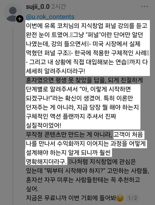 2) 온라인 강의, 코칭 및 컨설팅 프로그램 등을 제작하여 전문가로서 1인 사업을 하시고 싶은 사람