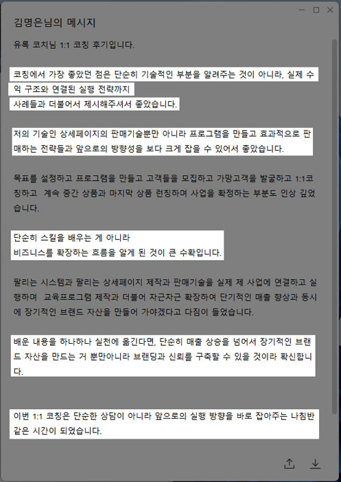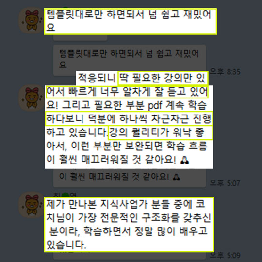 왜냐하면 평범했던 1인 사업가들을 백만장자로 성장 시켜준 <고객 / 해킹코드> 시스템은 저도 직접 검증을 했고, 저의 수강생들도 검증을 했으며 더 나아가서 해외 업계 TOP 비즈니스 코치들에 의해 입증된 방식이기 때문입니다.