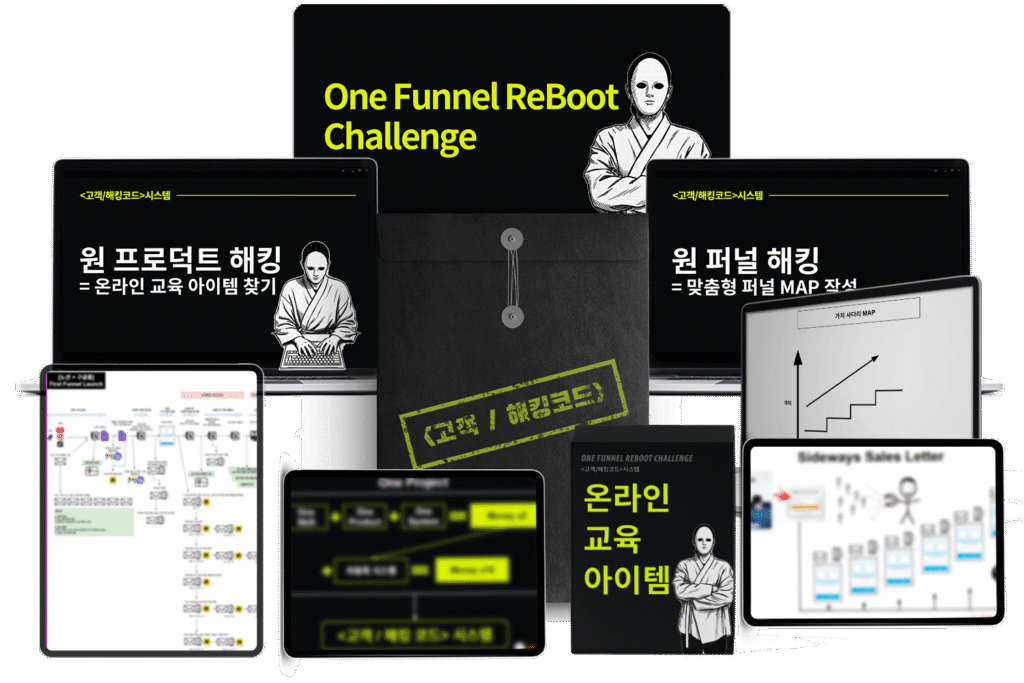 원 퍼널 리부트 챌린지는 당신의 취미, 기술 및 전문성으로 수익성있는 온라인 교육 프로그램을 설정하고 판매하기 위한 퍼널을 만드는 것입니다. 그 과정 중에 세일즈 퍼널 마케팅에 대한 교육을 받게 됩니다.