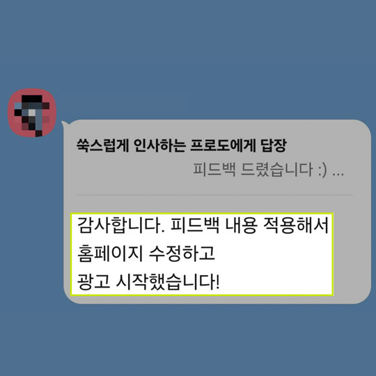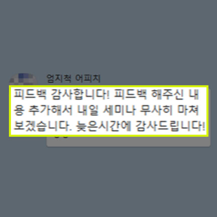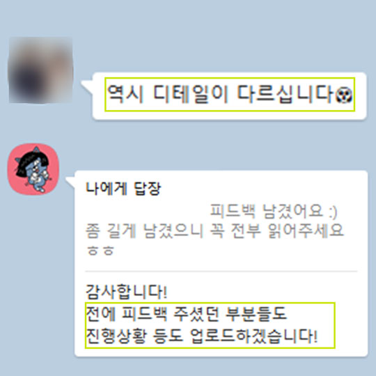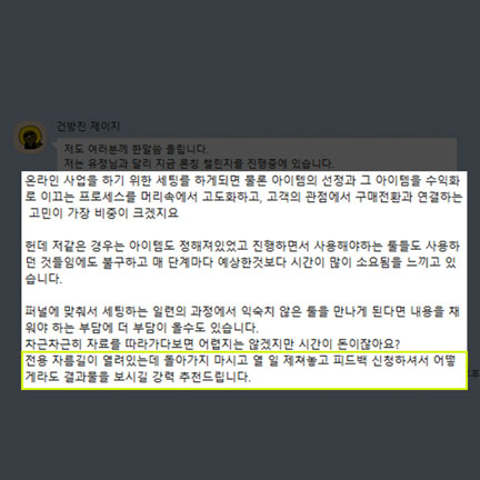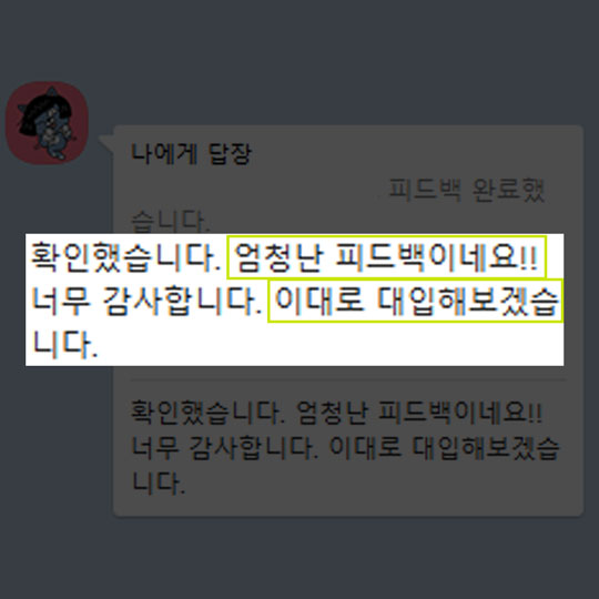 그래서 언제든 텍스트로 편하게 피드백 받으세요.