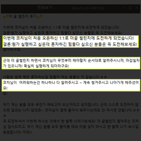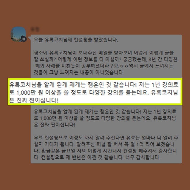 유록코치님 만큼 밀착해서 도움주시는 분은 없었어요"