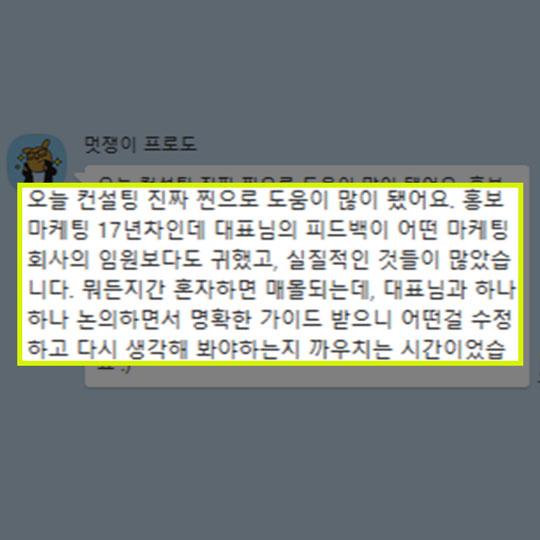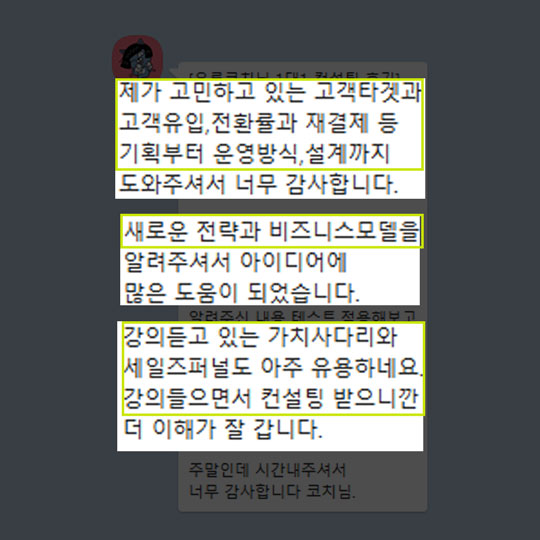 그녀는 수업 후 역대급 매출을 기록했습니다. 뚜렷한 정체성, 뚜렷한 비즈니스 전략과 방향성 등이 부족했었습니다. 하지만 이제는 강력한 무기를 얻었습니다. 그 이후부터는 빠르게 결과가 나왔습니다.