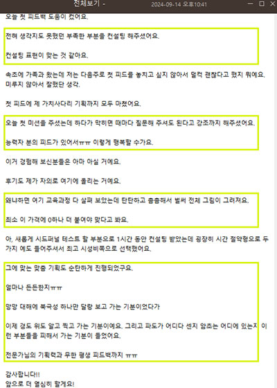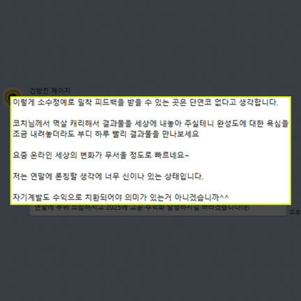 "이렇게 밀착 피드백을 받을 수 있는 곳은 없어요.