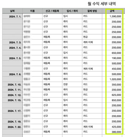 <고객/해킹코드>시스템을 활용하기 전에는 300만 원의 매출이었습니다. 그러나 1달 만에 970만 원, 성장해서 1800만 원, 다시 성장해서 2390만 원까지 달성했습니다. 더 오르지 말란 법이 있을까요?